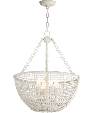 Hand-woven Natural Rattan blends casual comfort with impeccable craftsmanship. Further demonstrating the artisanal touch applied to this series, two hand-painted finish options either match Weathered White on both the rattan and its metal work or contrast Natural tones with an Antique Bronze finish. Choose from various scales of pendants where in some configurations a Satin White globe shade is included to diffuse the light source within. An ADA wall sconce completes the collection.