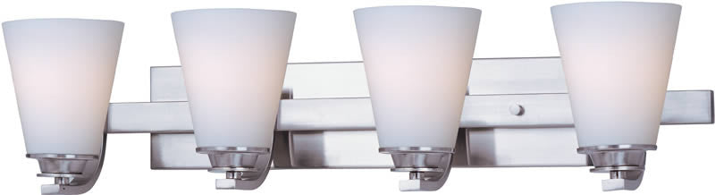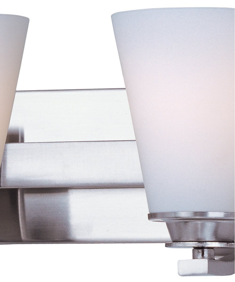 The Conical Bathroom Light by Maxim is featured in a Satin Nickel finish and a Satin White Glass shade which is ideal for any bathroom in the home