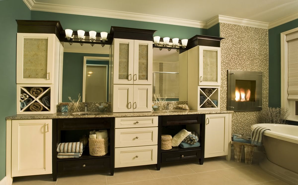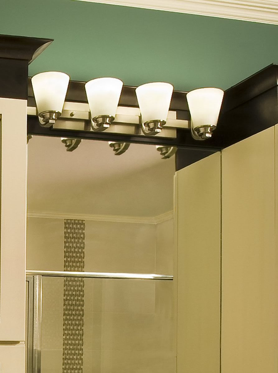 Bathroom lights usually are placed above or next to a bathroom mirror, above your vanity or sink. They provide a fairly strong light in front of your face which helps you to see clearly for washing, make-up application and so on. A row of 3-5 light bulbs is ideal for most bathrooms, while 1-light or 2-light fixtures could be placed either side of a mirror. Bath vanity lights shield your eyes from the glare of lightbulbs and also provide ambient light for the whole bathroom.