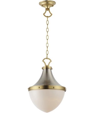 This pendant light features a sophisticated combination of Satin Nickel and Satin Brass finishes. The two-tone metalwork adds a touch of elegance and versatility, making it suitable for various interior styles. The Satin White glass shade complements the metal finishes, providing a cohesive and stylish look.