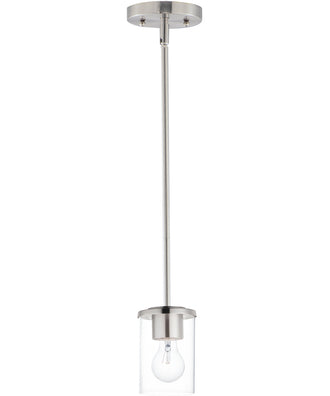 The Corona 1-Light Mini Pendant in Satin Nickel is a perfect blend of modern design and sleek simplicity. Its minimalistic frame, finished in a sophisticated satin nickel, adds a touch of elegance to any space. The clear glass shade provides a clean and contemporary look, allowing the light bulb to be a focal point. This pendant light is designed to complement various interior styles, from modern and minimalist to transitional and industrial.