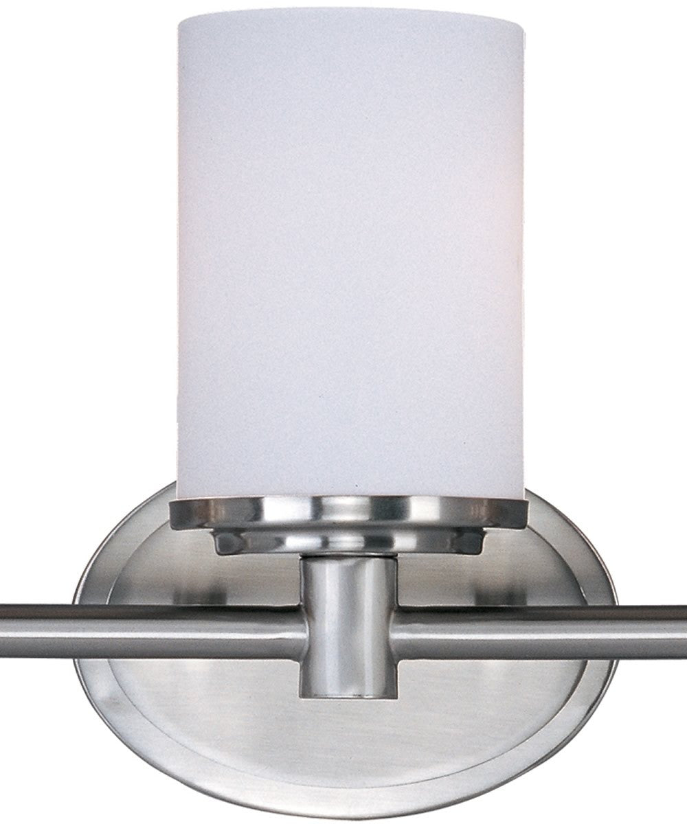 The Cylinder Bathroom Light by Maxim is featured in a Satin Nickel finish and a Satin White Glass shade which is ideal for any bathroom in the home