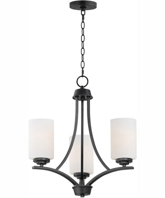 The Deven 3-Light Chandelier in Black is a stunning addition to any home. Its low sloping arms made from rectilinear tubing create a sleek and modern design that is both sophisticated and timeless. The chandelier features a matte black finish, adding a touch of elegance and contrast to its surroundings. The tall, cylindrical Satin White glass shades soften the light, providing a warm and inviting ambiance.