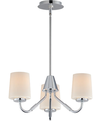The Durham 3-Light Chandelier in Polished Chrome is a stunning addition to any modern home. Featuring a sleek, polished chrome finish, this chandelier exudes elegance and sophistication. The design incorporates knurled rod details, adding a touch of industrial edge to its contemporary style. The three white glass shades provide a soft, diffused light that enhances the ambiance of any room.