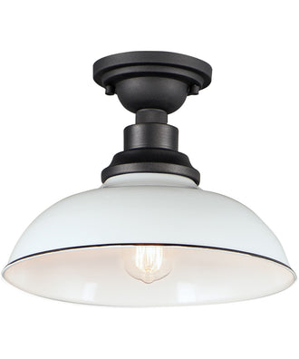This flush mount light boasts a sleek and modern design, characterized by its steel construction and black painted edges. The knurled sockets add an element of authenticity, while the glossy white finish on the shade provides a polished look. Measuring 9 inches in height and 12 inches in width, this fixture is compact yet impactful, making it suitable for both small and large spaces.