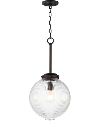 Introducing the Kasbah 12 inch Pendant in Oil Rubbed Bronze, a stunning addition to any home decor. This pendant light features a nostalgic spherical glass volume with a ribbed pattern and a dipped flat bottom, offering a retro yet eclectic charm. The oil-rubbed bronze finish adds a touch of sophistication, making it an ideal choice for those seeking to elevate their interior spaces.
