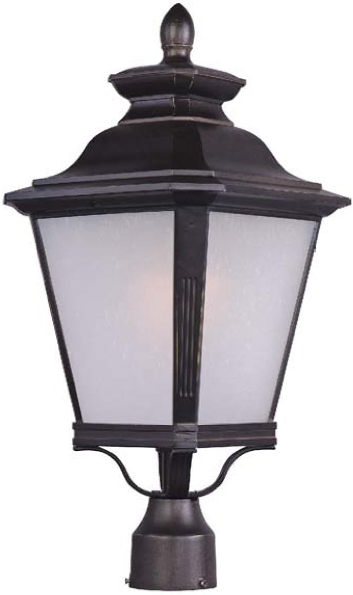 The Knoxville 1-Light Outdoor Post Mount features a single medium base bulb socket that supports up to 100 watts (bulb not included). This allows for ample illumination, making it perfect for lighting up pathways, driveways, gardens, and patios. The frosted glass panels diffuse the light evenly, creating a warm and inviting ambiance while reducing glare.