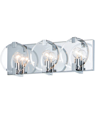 Round Clear beveled edge glass panels are suspended from frames of Polished Chrome for crisp and clean look. Simple, yet elegant, this collection delivers a quiet sophistication for everyday living.