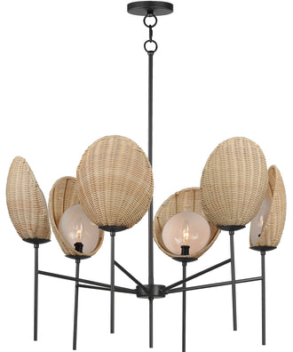 Transform your living space into an exotic retreat with the Maldives 6-Light Chandelier in Black. This exquisite lighting fixture captures the essence of tropical elegance, making it a perfect addition to any room seeking a touch of island-inspired charm.