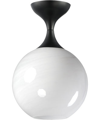 Featuring a swirling white Marble Glass globe that encases the light source, the shades are reminiscent of snowglobes. The collection provides a wonderfully wintery composition that is timelessly elegant effortlessly sophisticated. Choose from multiple sizes of the bath vanity lights as well as a larger glass pendant or flush mount options. Available in Natural Aged Brass, Polished Chrome, or Matte Black.