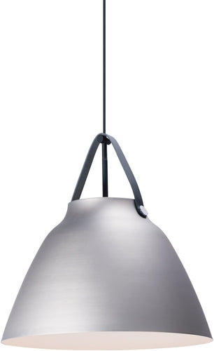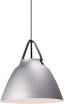 Inspired by classic Scandinavian design, these metal spun pendants of Black, White and Brushed Platinum are accented with natural elements like Walnut finished wood and Tan or Black leather straps.