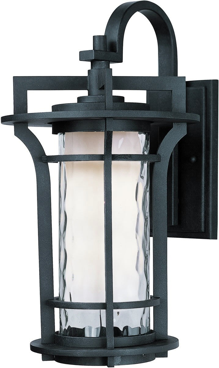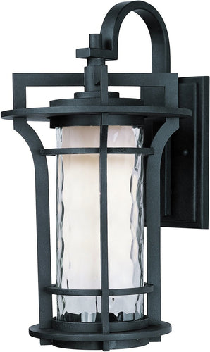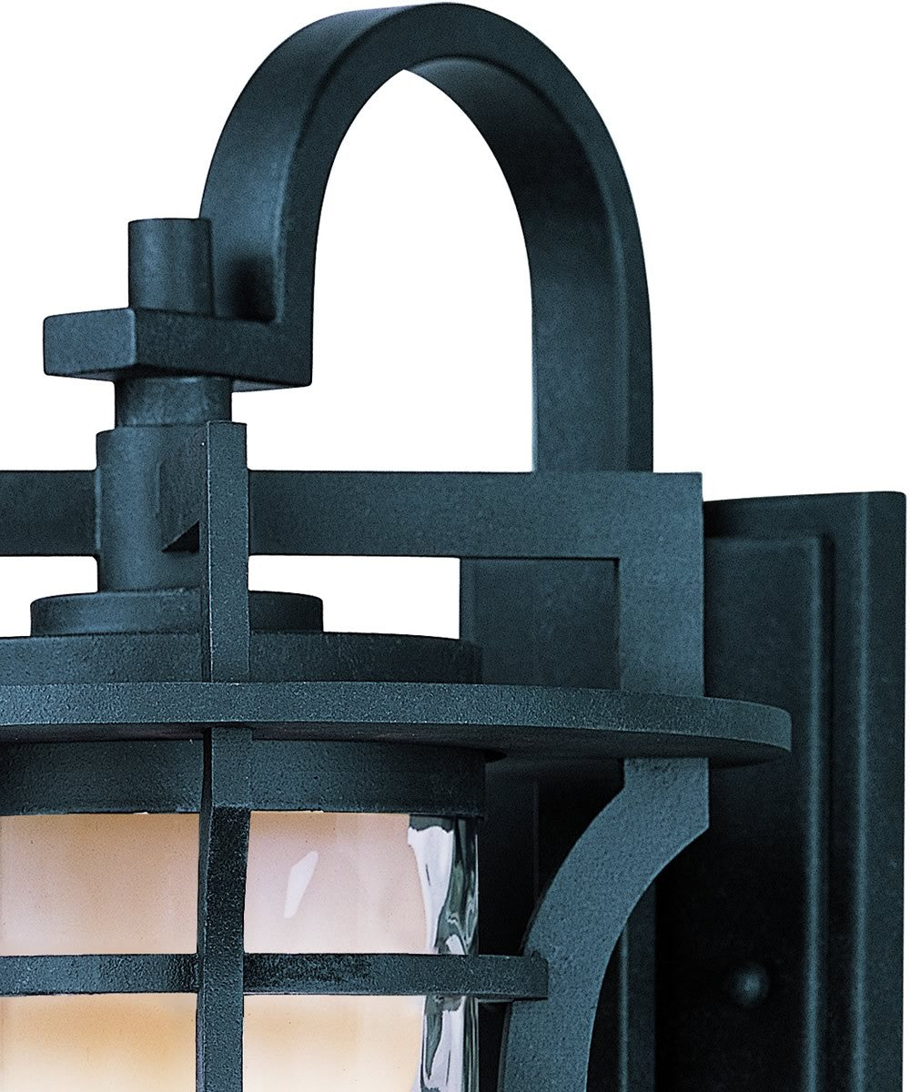 Featuring a water glass shade, this outdoor wall mount light adds a touch of elegance and sophistication to your exterior decor. The textured glass creates a beautiful diffusion of light, casting a warm and inviting glow that enhances the ambiance of your outdoor areas. The intricate metalwork and attention to detail make this fixture a true statement piece.