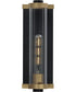 Internally ribbed clear glass tubes refract tubular lamps, creating a shimmering light effect. The glass is supported by a two-tone black frame with Aged Brass accents, making this sconce suitable for both indoor and outdoor installations. With a depth of less than 4 inches, this ADA compliant sconce may also be used in commercial applications. .