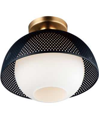 Perf 1-Light Flush Mount Black / Satin Brass