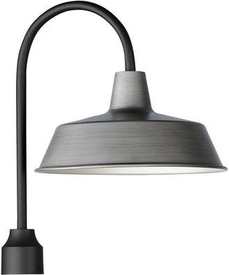 Step back in time with the Pier M 1-Light Post Lantern in Weathered Zinc/Black, a lighting fixture that evokes the nostalgic charm of old gangster movies. This exquisite lantern is reminiscent of the classic lighting found on wharfs, adding a touch of vintage elegance to any outdoor space. The design features a sleek, curved arm that gracefully supports an aluminum shade, finished in a sophisticated weathered zinc and black combination.