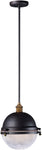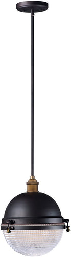 The 12"W Portside 1-Light Outdoor Pendant encapsulates the charm of nautical design with its solid dome of aluminum finished in a sophisticated Oil Rubbed Bronze. Complemented by solid brass hardware in an Antique Brass finish, this pendant light exudes a timeless elegance that is sure to enhance the aesthetic of any outdoor space. The clear prismatic glass diffuser adds a touch of authenticity, creating a beautiful interplay of light and shadow.