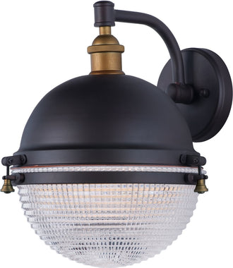Introducing the 14" Portside 1-Light Outdoor Wall Sconce, a perfect blend of style and functionality. This nautical-inspired wall sconce features a solid dome crafted from durable aluminum, finished in an exquisite Oil Rubbed Bronze. The sturdy brass hardware, finished in Antique Brass, adds a touch of vintage charm, making it an ideal addition to any outdoor space. The sconce's clear prismatic glass diffuser completes its authentic maritime look, ensuring both aesthetic appeal and practical illumination.