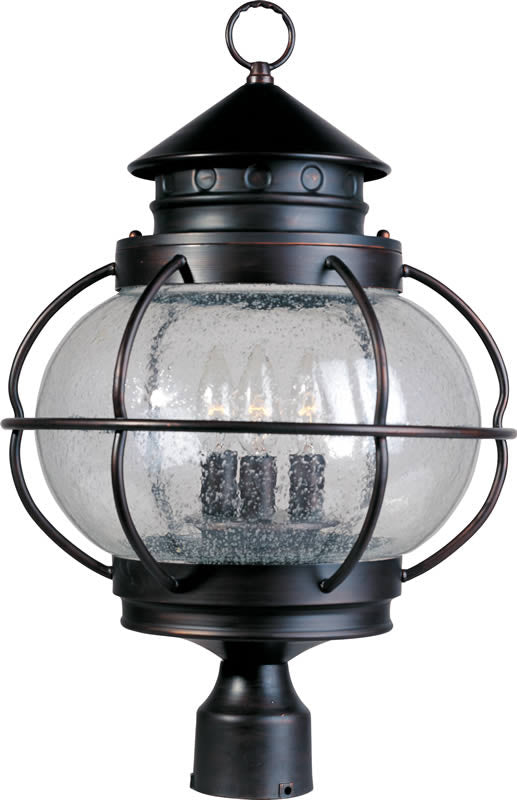 An outdoor post lantern is attached to the top of a metal post (not included). This is usually positioned at the entrance to a driveway, or in the middle of a large open space. It can also function to light an entry-way if placed close to the building. Light is emitted in all directions. As a hardwired fixture, outdoor post lights are electrically installed and may be operated by a wall switch or sensor. A larger yard may need more than one. They can be alternatively mounted onto a pier-mount adapater on top of a wall.