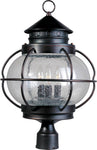 This outdoor post mount light features a beautifully crafted seedy glass globe, which adds a unique texture and diffuses light softly, creating a welcoming ambiance. The glass is encased in a robust metal frame with an oil-rubbed bronze finish, ensuring durability and resistance to the elements. The fixture's 22-inch height and 14-inch width make it a substantial yet elegant presence on your property.