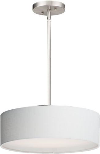 The 16"W Prime LED Pendant in Satin Nickel is a stunning addition to any modern home or commercial space. With its sleek satin nickel finish and clean lines, this pendant light exudes contemporary elegance. The drum-shaped fabric shade provides a soft, diffused light that creates a warm and inviting atmosphere. The internal acrylic diffuser twist locks into place, ensuring a crisp, clean look without any exposed screws or knobs.
