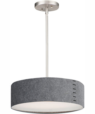 The Prime Acoustic LED Pendant features a sleek, drum-shaped shade crafted from sound-absorbing grey felt, offering a unique texture that adds depth and interest to any room. The satin nickel finish complements the contemporary design, providing a polished and refined look that seamlessly integrates into various décor styles. The pendant's minimalist design is accentuated by its clean lines and subtle details, making it a versatile addition to any space.