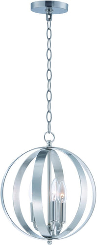 The 12" W Provident 3-Light Chandelier in Satin Nickel is a stunning addition to any home. Its unique design features pivoting metal bands that form a captivating spherical shape. The chandelier's satin nickel finish adds a touch of modern elegance, making it a versatile piece that complements various interior styles. Whether your decor leans towards contemporary, transitional, or even industrial themes, this chandelier will seamlessly blend in while adding a sophisticated flair.