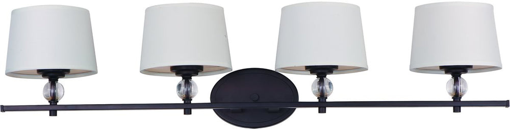 This Rondo 4-Light Bath Vanity by Maxim features a Oil Rubbed Bronze finish, that will bring a fresh light to your room and complement your decor..