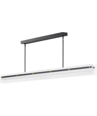 The Spectre 61.5 inch Linear Pendant in Black and Natural Aged Brass is a striking addition to any modern interior. This pendant light features a sleek, elongated design that exudes contemporary elegance. The matte black frame is complemented by natural aged brass pins, providing a sophisticated contrast that enhances its visual appeal. The clear ribbed glass shade adds texture and diffuses the integrated LED light, creating a soft, ambient glow that is easy on the eyes while providing ample illumination.
