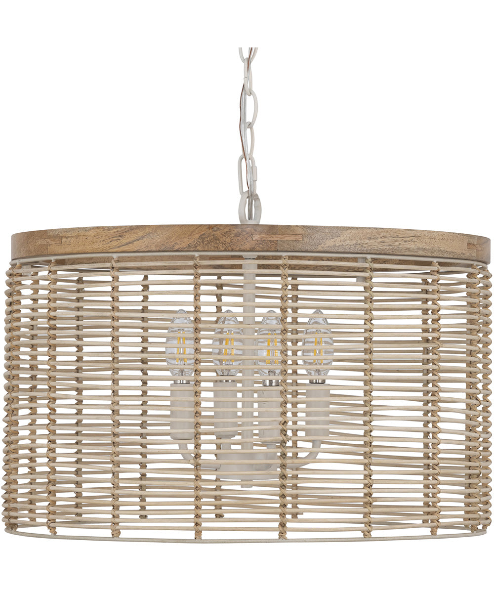 Transform your home with the Vannerie 4-Light Pendant Ecru, a perfect blend of style, functionality, and quality. Its hand-woven rattan shade, weathered wood accents, and ecru finish create a timeless piece that complements any decor. Ideal for dining rooms, living rooms, bedrooms, and more, this pendant light offers versatile placement options and adjustable hanging height. Illuminate your space with elegance and charm—order now and elevate your home's interior design.