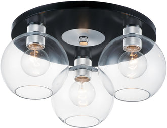 Maxim 17"W Vessel 3-Light Flush Mount Black / Brushed Aluminum