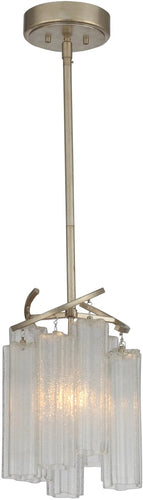The 11"W Victoria 1 Light Pendant in Golden Silver is a stunning addition to any home, blending contemporary and traditional design elements seamlessly. This exquisite pendant light features cascading Waterfall glass shades that create a mesmerizing visual effect, adding a touch of sophistication and elegance to your space. The Golden Silver finish enhances its luxurious appeal, making it a perfect centerpiece for any room.