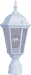 An outdoor post lantern is attached to the top of a metal post (not included). This is usually positioned at the entrance to a driveway, or in the middle of a large open space. It can also function to light an entry-way if placed close to the building. Light is emitted in all directions. As a hardwired fixture, outdoor post lights are electrically installed and may be operated by a wall switch or sensor. A larger yard may need more than one. They can be alternatively mounted onto a pier-mount adapater on top of a wall.