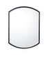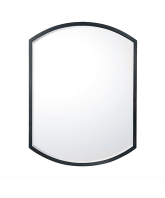 Decorative mirror with Matte Black metal frame, rectangular sides with curved top and bottom. Includes mounting bracket with D-ring hangers.
