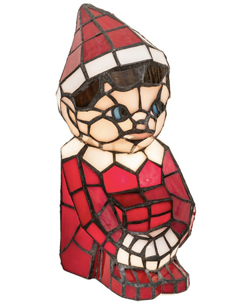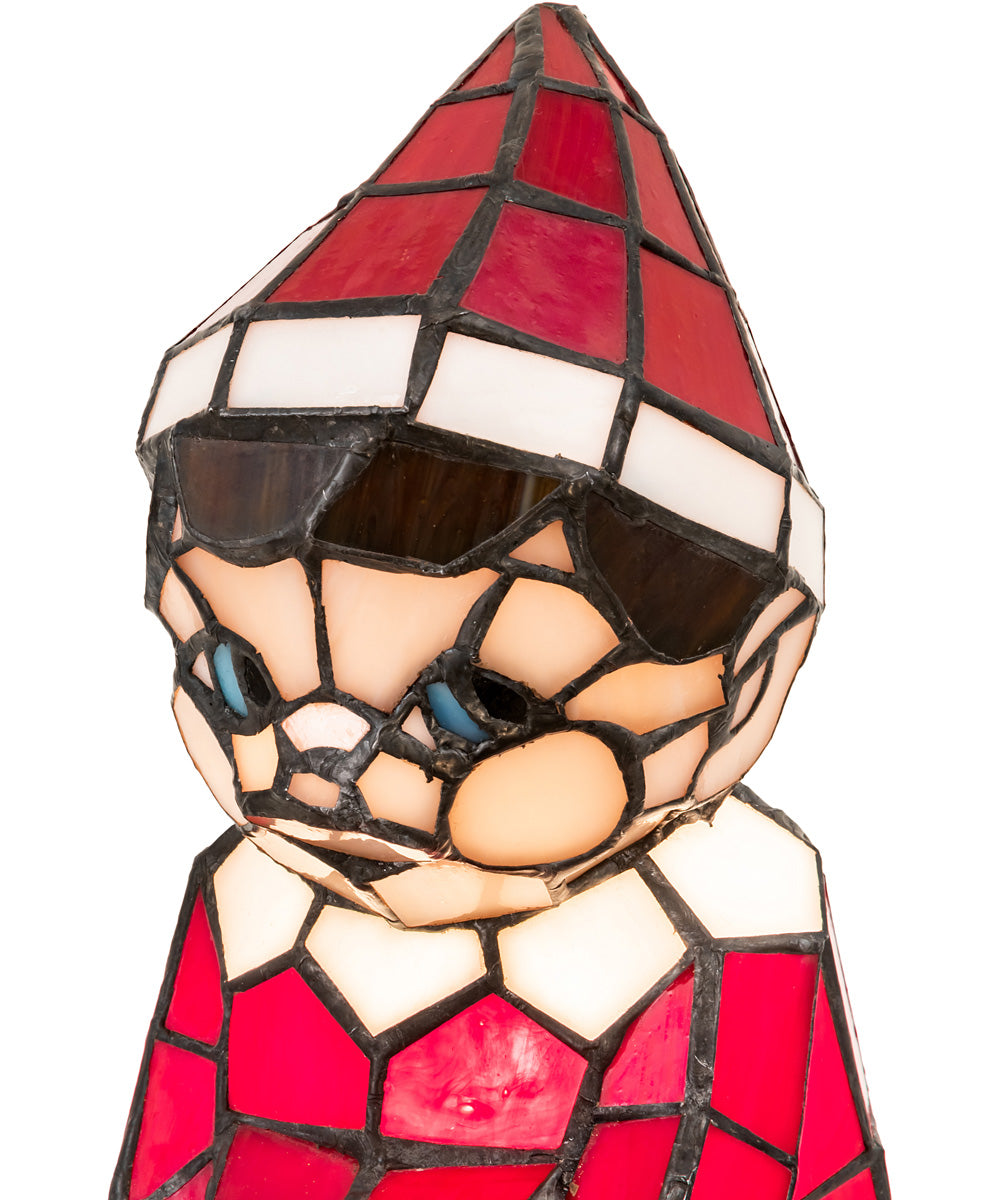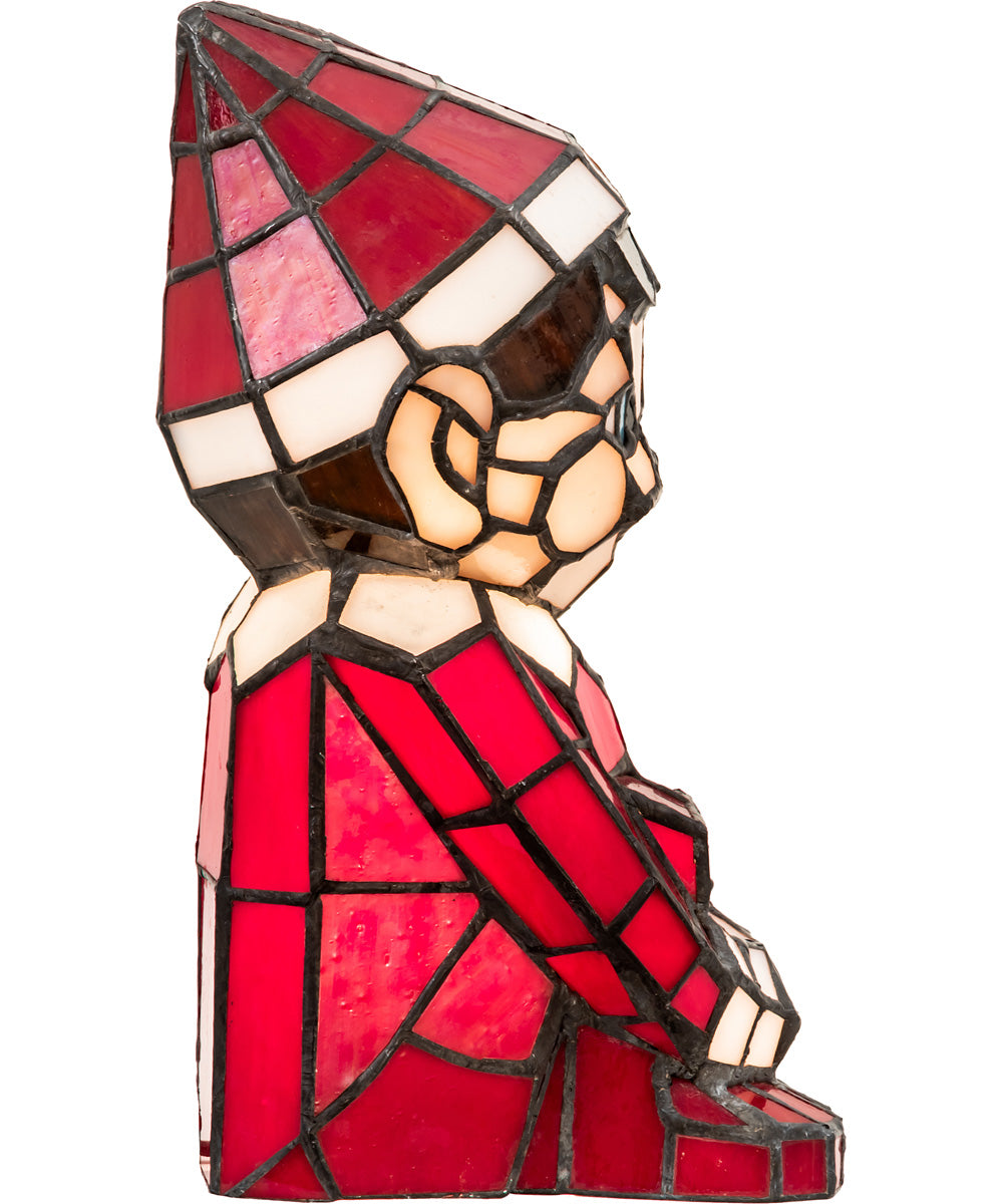 A charming lighted Tiffany styled sculpture, Santa's Helper comes to light as a colorful accent lamp. The Elf is adorned in an exquisite outfit featured in Red art glass with White glass trim.  Will look great each season on your table or on a shelf.  Every Meyda Tiffany item is a unique, handcrafted work of art. Warm your heart and imagine Santa's Helper on your shelf or over the mantle.