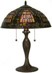 The 23"H Fleur-De-Lis Dome Tiffany Table Lamp is a stunning piece that exudes elegance and timeless style. Crafted by Meyda Tiffany, this lamp features a beautifully designed dome-shaped shade adorned with intricate stained glass patterns. The vibrant colors and exquisite detailing of the glass create a captivating visual appeal, making it a perfect addition to any room.