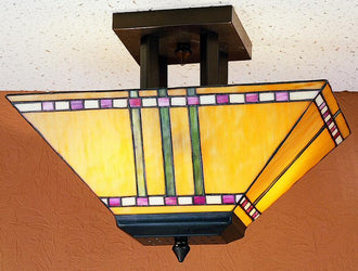 A semi-flush light fixture is mounted to a ceiling. While part of the fixture sits flush to the ceiling, usually there is a gap between the ceiling and the light shade. A close-to-ceiling fixture can work well as a central light fixture, ideal in smaller rooms and hallways where there is less head-room. A semi-flush fixture tends to be more decorative than a fully-flush light fixure. These lights are hardwired and must be installed electrically, operated by a wall switch. They produce good ambient light, although a larger room may need more than one.