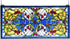 99 jewels and 432 pieces of hand cut stained glass are used to create this radiant flower vine and shell inspired sonja transom window. Dainty merlot flowers with ruby centers are surrounded with jade vines on gold and azure flourishes. Handcrafted utilizing the copper foil construction process created by tiffany, the window also comes with a solid brass hanging chain and brackets.
