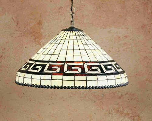 The 21" Tiffany Ceiling Lamp is a stunning piece of art that brings a touch of elegance and timeless beauty to any room. Handcrafted using the world-famous copperfoil construction process perfected by Louis Comfort Tiffany over a century ago, this lamp showcases intricate craftsmanship and attention to detail. The lampshade features a classic conical shape with a diameter of 20 inches and a height of 10.5 inches, making it a prominent and eye-catching fixture in your home.