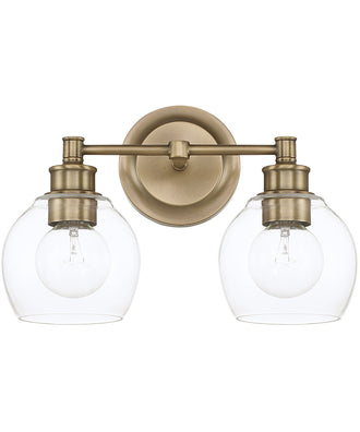 Capital lighting Mid-Century 2-Light Vanity In Aged Brass With Clear Glass