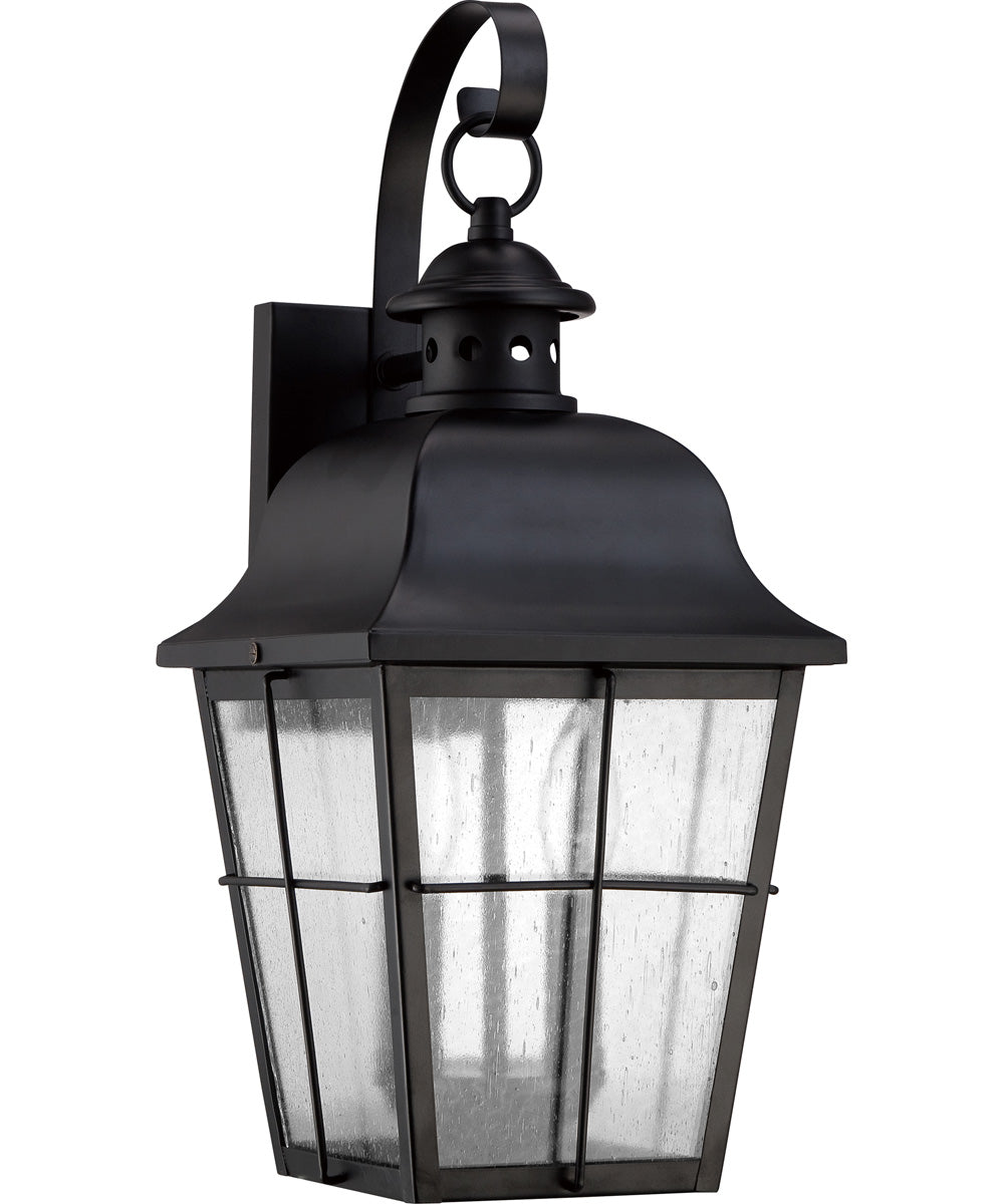 Outdoor wall lanterns, also referred to as porch lights or garage lights, are mounted onto a wall. Usually they are ideal next to an entrance or either side of a garage. They will light up the local area and most of the yard, although a larger space may need more than one. Being fixed to the wall they place the light closer to the building, ideal for entering or exiting, or to help with parking. They are installed electrically as a hardwired fixture and usually operated by a wall switch or sensor.