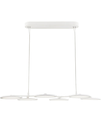 Create a sleek and contemporary look with the Nitro collection. This fixture uses minimal design details and comes in a Matte Black or White Lustre finish. The suspended discs use integrated LED technology to emit a warm glow while also saving energy.