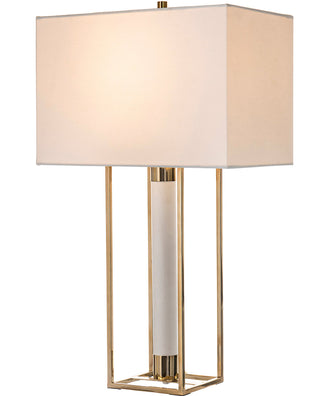 Noreen 1-Light Table Lamp Polished Gold/White Fabric Shade