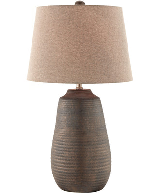 Lite source Paley 1-Light Table Lamp Metallic Bronze Ceramichrome/ Grey Fabric