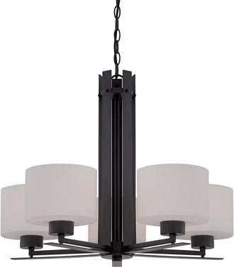 Nuvo Lighting presents the Parallel - 5 Light - Chandelier with Etched Opal Glass , to breathe new life into your home or office.