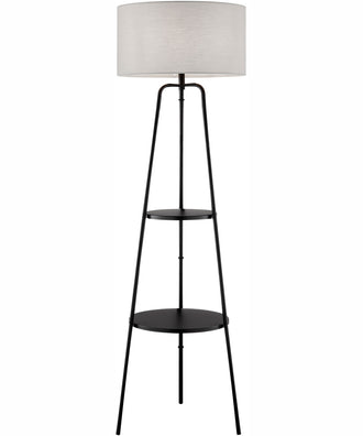 Patterson 1-Light Floor Lamp With Shelves Black/Grey Fabric Shade