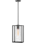 The Pax 1-Light Medium Outdoor Hanging Lantern in Satin Black by Hinkley is a perfect blend of modern elegance and timeless style. This lantern features a sleek rectangular frame crafted from high-quality aluminum, finished in a sophisticated satin black. The minimalist design is complemented by a clear cylindrical glass shade with a textured pattern, adding a touch of refinement and visual interest. The simple yet striking design makes it an ideal addition to any contemporary or transitional outdoor space.