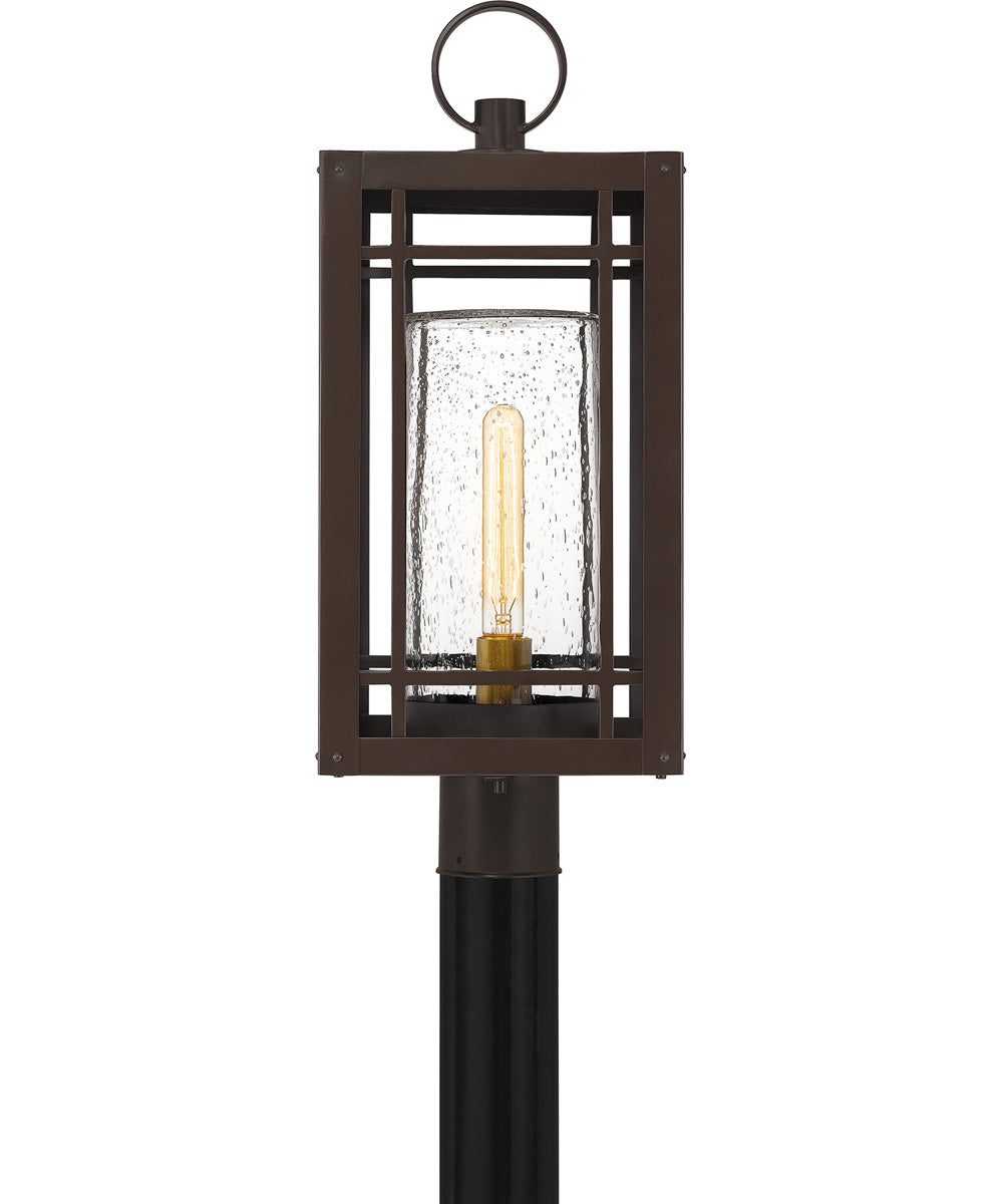 An outdoor post lantern is attached to the top of a metal post (not included). This is usually positioned at the entrance to a driveway, or in the middle of a large open space. It can also function to light an entry-way if placed close to the building. Light is emitted in all directions. As a hardwired fixture, outdoor post lights are electrically installed and may be operated by a wall switch or sensor. A larger yard may need more than one. They can be alternatively mounted onto a pier-mount adapater on top of a wall.