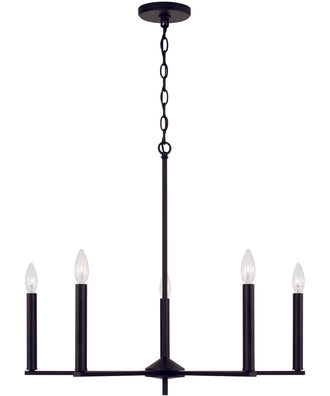 Elevate your home's aesthetic with the striking Portman 5-Light Chandelier in Matte Black. This chandelier combines modern elegance with classic charm, making it a versatile addition to any space. The sleek, distinct lines and minimalist design create a sophisticated look that complements various interior styles, from contemporary to traditional.