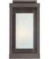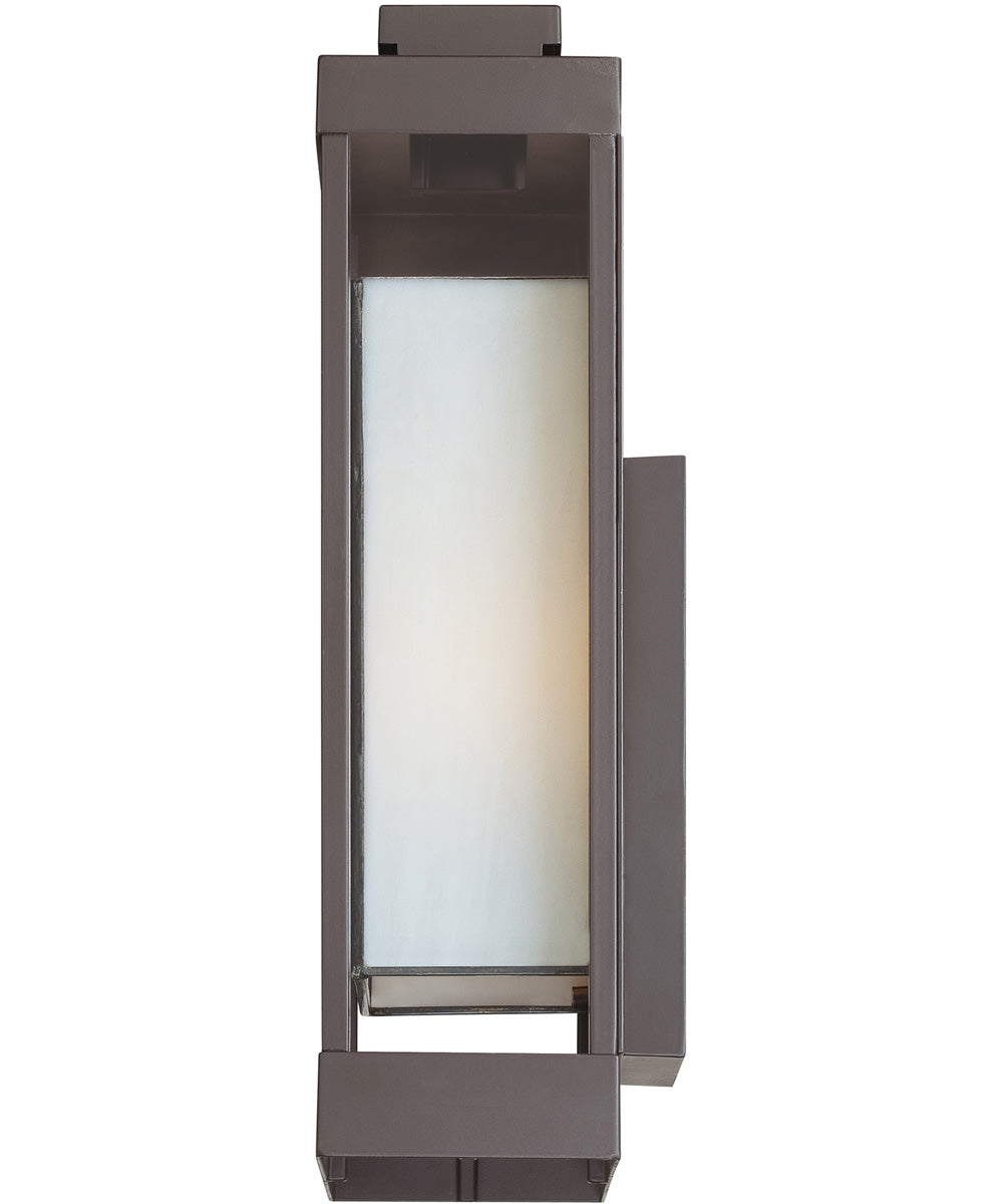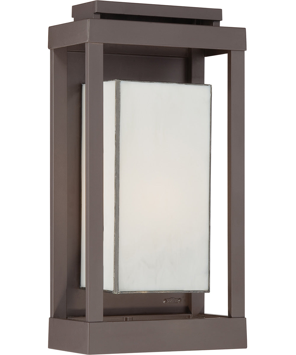Enhance the exterior of your home with this unique and unadorned Powell collection. The shadowbox is striking in a western bronze finish and is contrasted beautifully by the rectangular white art glass.