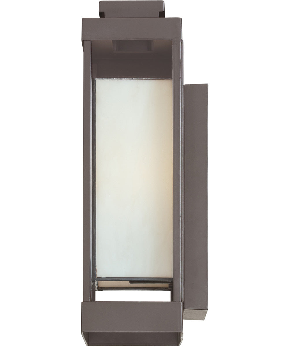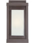 Enhance the exterior of your home with this unique and unadorned Powell collection. The shadowbox is striking in a western bronze finish and is contrasted beautifully by the rectangular white art glass.